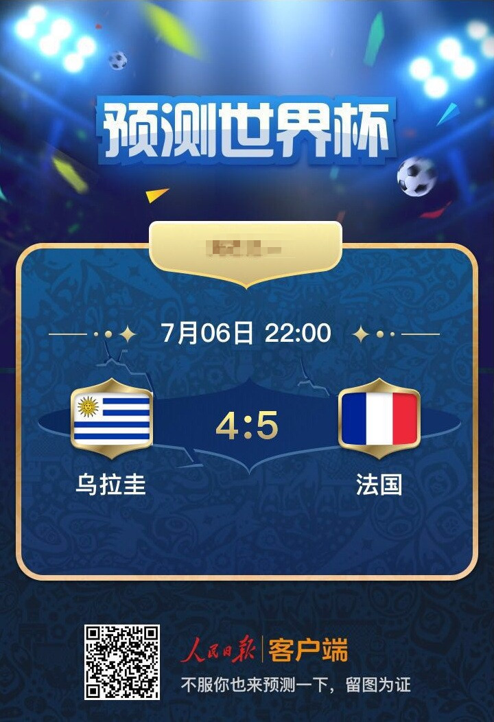 今夜比赛你看好谁?你觉得支持的球队能走多远?来人民日报客户端预测世界杯赛事,生成你的“专属比分”吧。具体操作如下: