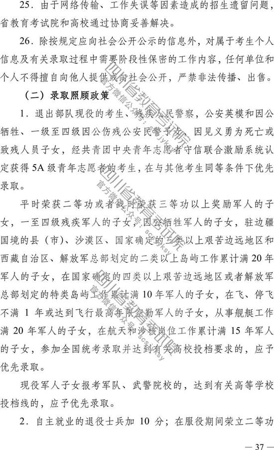 四川高招规定
