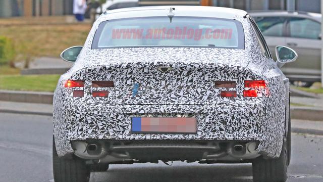 车身后部没有多少明显的细节,后备箱盖上一个小的后翼较为显眼,除此之外整个车尾都覆盖在伪装之下,很难看出什么特征。