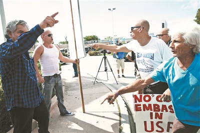 7月20日,美国迈阿密,美古关系正常化支持者与反对者在街头辩论 供图/CFP
