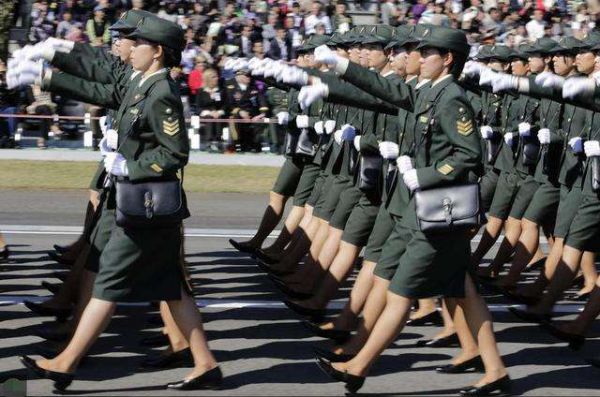 资料图片:阅兵式上的日本陆自女自卫队员方队。(图片来源于网络)