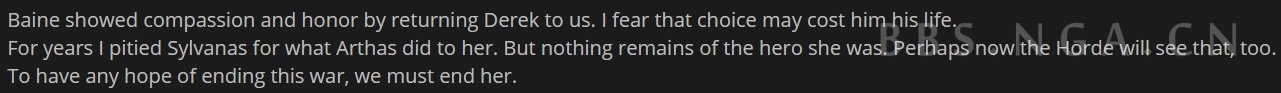 在8.1S2的主线之后,希女王拉起了德里克·普罗德摩尔,吉安娜的哥哥。贝恩觉得这已经超出底限,再也忍无可忍。于是开始行动!